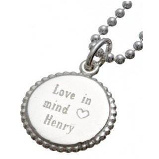 Diese handgefertigte, massive Platte ist an der Kugelkette ganz harmonisch und feminin. Der Kreis steht für Unendlichkeit und Verbundenheit, mit vielen kleinen Liebesperlen. Auf der flachen Rückseite gravieren wir für Sie die Namen Ihrer Liebsten, eine Botschaft oder liebe Wünsche. Lassen Sie Ihrer Kreativität freien Lauf.